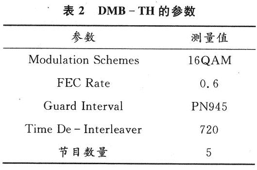 在完成了USB數(shù)字電視接收棒的系統(tǒng)總體方案設計之后,根據(jù)所選用的芯片,參照相應技術(shù)手冊,設計了電路原理圖并制作了印刷電路板。在硬件制作期間,同時進行軟件的開發(fā)工作。在硬件制作完成后,利用KEILC和VC6++進行了調(diào)試。利用筆記本電腦在室內(nèi)和運動狀態(tài)下分別進行了長時間(12h)測試,USB端口接收數(shù)據(jù)的速度穩(wěn)定在1.8MB/s。測得廈門地區(qū)國標DMB-TH數(shù)字電視的參數(shù)見表2。