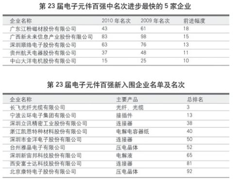國際金融危機造成的企業(yè)經(jīng)營上的波動反饋到了第22屆、23屆元件百強的榜單上。在近兩屆的榜單之中,均有20家左右企業(yè)的名次出現(xiàn)了10位以上(含10位)的較大波動,去年23家,今年20家。據(jù)估計,如果國際國內(nèi)的經(jīng)濟形勢能保持穩(wěn)定,在未來一兩年內(nèi),元件百強榜單中,名次出現(xiàn)大起大落的企業(yè)數(shù)量將會減少。