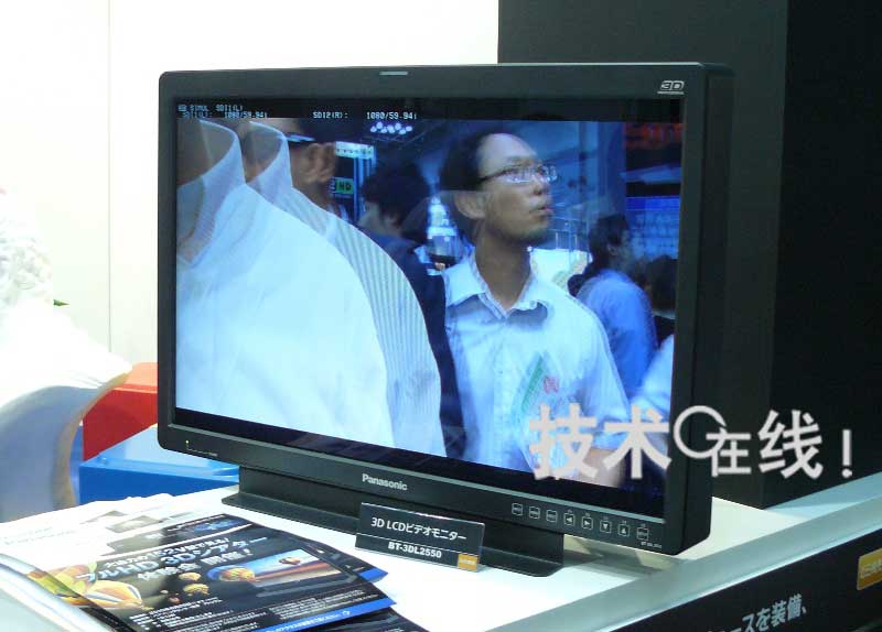 松下的3D液晶顯示器畫面尺寸為25.5英寸,像素為1920×1200。預(yù)定近期上市,價格為100萬8000日元。支持隔行交互配置左眼及右眼用影像信號的“Line-By-Line方式”、分兩條信號線發(fā)送左眼及右眼用影像信號的“Simul方式”、以及將左眼及右眼用影像信號只在水平方向壓縮至1/2左右配置的“Side-By-Side方式”。預(yù)定2010年秋季上市采用120Hz驅(qū)動PDP及液晶快門配備型眼鏡、支持“Frame Sequencial方式”的3D顯示器。