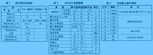 圖9是該音箱分頻器電路圖,分頻點選在3kHz。由于揚聲器是一個感性負載,當通過信號頻率不同時,其阻抗變化很大,故在分頻器中加入了由R1、C3、R2、C6組成的阻抗校正網絡,使分頻器的負載阻抗近似為恒定值。分頻器所用元器件的參數如表3所示。