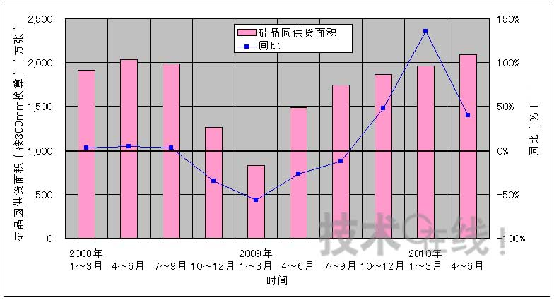 國際半導體制造設(shè)備材料協(xié)會(SEMI)公布了2010年第二季度(2010年4~6月)的全球半導體用硅(Si)晶圓供貨業(yè)績。發(fā)布資料顯示,硅晶圓供貨面積在2009年第一季度(2009年1~3月)觸底后連續(xù)五個月增加,突破了2000萬片(按300mm晶圓換算,下同)大關(guān)。超過了此前的歷史最高記錄——2008年第二季度(2008年4~6月)的1946萬片,刷新了歷史記錄。