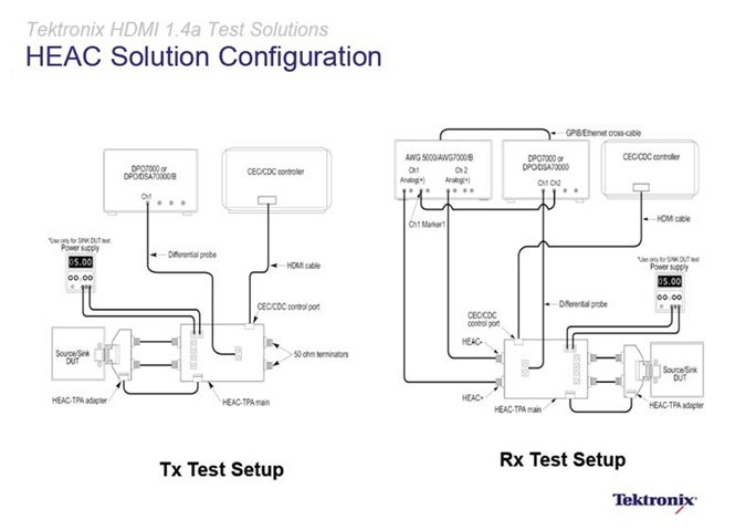 除了接收端抖動(dòng)容限測(cè)試方案,泰克還提供完善的HDMI1.4a物理層測(cè)試解決方案。這些方案采用了泰克公司的DPO/DSA/MSO70000系列實(shí)時(shí)示波器、DSA8200采樣示波器以及i-Connect軟件、AWG7000B任意波形發(fā)生器、差分探頭、測(cè)試夾具和符合驗(yàn)證軟件。