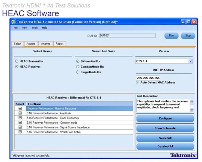 作為HDMI標(biāo)準(zhǔn)組織的活躍成員,在HDMI1.0時(shí)期就率先跟進(jìn)的泰克公司,長(zhǎng)期與HDMI管理委員會(huì)和客戶緊密合作,為HDMI的發(fā)展做出了很多貢獻(xiàn)。泰克受HDMI標(biāo)準(zhǔn)組織委托參與開發(fā)了一系列的測(cè)試標(biāo)準(zhǔn)和解決方案,并通過了批準(zhǔn),包括泰克支持所有線纜仿真器類型的直接合成(DS)解決方案和關(guān)鍵物理層測(cè)試(如3D和HEAC等)解決方案。