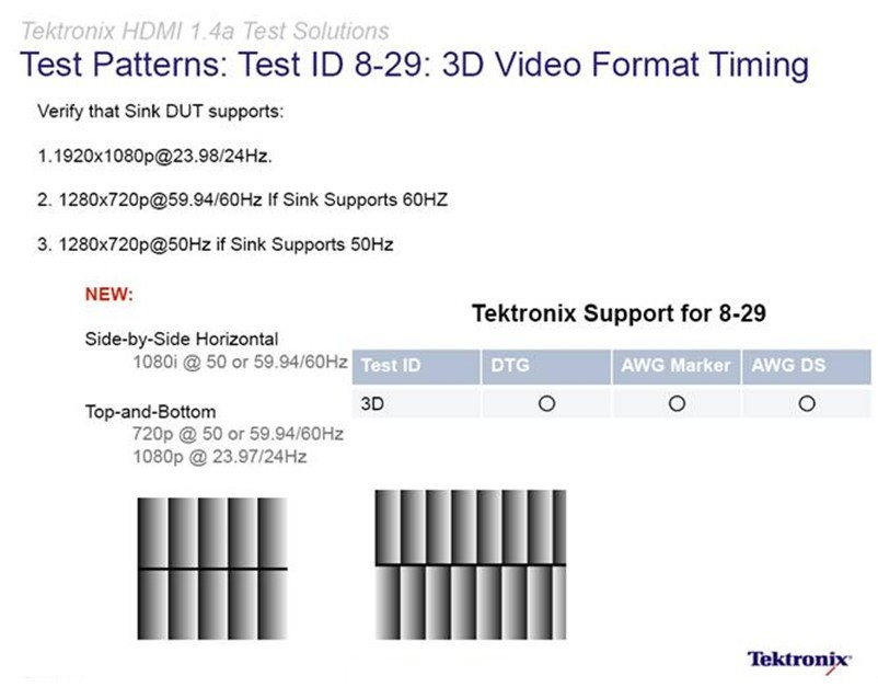 圖5:泰克參與制定了HDMI1.4/1.4a關(guān)于強(qiáng)制3D視頻格式的一致性測(cè)試標(biāo)準(zhǔn)。