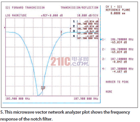 圖5:微波矢量網(wǎng)絡分析儀測量到的陷波濾波器的頻率響應。