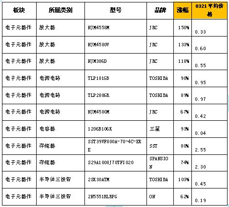 從我們采集到的數(shù)據(jù)來看,閃存開始呈現(xiàn)明顯上漲趨勢。3月15日,東芝閃存報價已經(jīng)上漲50%,而三星、現(xiàn)代也提價6%-26%;從通用元器件來說,日系的產(chǎn)品已經(jīng)全線上揚,而且是全面缺貨。下表為3月21日的電子元器件漲幅排行表,可以看出,漲幅最大的幾乎都是受災(zāi)企業(yè)的產(chǎn)品。