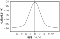 AMR單體是用鎳和鐵等制成的強(qiáng)磁性金屬合金。一般采用硅(Si)制成,當(dāng)遇到施加的電流方向垂直的磁場時(shí),阻抗值發(fā)生變化。這個(gè)現(xiàn)象就稱為磁阻效應(yīng),特性如圖1所示。它以0(零)H為軸,正負(fù)兩側(cè)對(duì)稱的特性,因此是不區(qū)別磁鐵的N極和S極的兩極檢測。