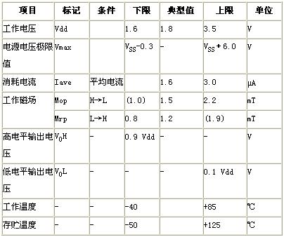 圖2為AS系列的外觀形狀。除了業(yè)界標(biāo)準(zhǔn)的SOT23(2.9×2.8×1.2mm),SON4(2.0×2.1×0.6mm)之外,加上超小型的XSON(1.2×1.2×0.4mm),共3種規(guī)格,可根據(jù)實(shí)際空間組合選擇。表1是AS系列的代表產(chǎn)品AS-M15TA-R的規(guī)格一覽表,其中最重要的是工作磁場。工作磁場是指輸出信號(hào)改變的磁場,為了防止跳躍現(xiàn)象(“高”和“低”在閾值附近反復(fù)出現(xiàn)的現(xiàn)象),具有磁滯區(qū)間,如圖3所示。除了標(biāo)準(zhǔn)特性外,還具有靈敏度可變,工作電壓的擴(kuò)大可變等特性。詳細(xì)的規(guī)格標(biāo)準(zhǔn)就不在此詳述。圖4是為了減少消耗電流進(jìn)行的抽樣測定的說明簡圖。