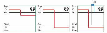 另一個(gè)規(guī)則是搜索那些改變信號(hào)層和回路電流參考平面的網(wǎng)絡(luò)。如果信號(hào)跡線僅從參考平面上方改變到下方,產(chǎn)生的輻射很小。在這種情況下,回路電流可以繼續(xù)在同一個(gè)平面流動(dòng)。如果信號(hào)層和參考平面同時(shí)改變,則回流路徑必須得到保證(如圖2)。在過孔附近使用電容器,必須避免產(chǎn)生不想要的路徑和環(huán)路的回路電流。這個(gè)軟件設(shè)計(jì)規(guī)則必須識(shí)別并允許在BGA下方的有孔的區(qū)域的層的改變,因?yàn)榛亓鞑粫?huì)通過電容器但是會(huì)通過BGA。如果這個(gè)原則被違背了,層改變出現(xiàn)地方的過孔會(huì)由軟件強(qiáng)調(diào)顯示出來。