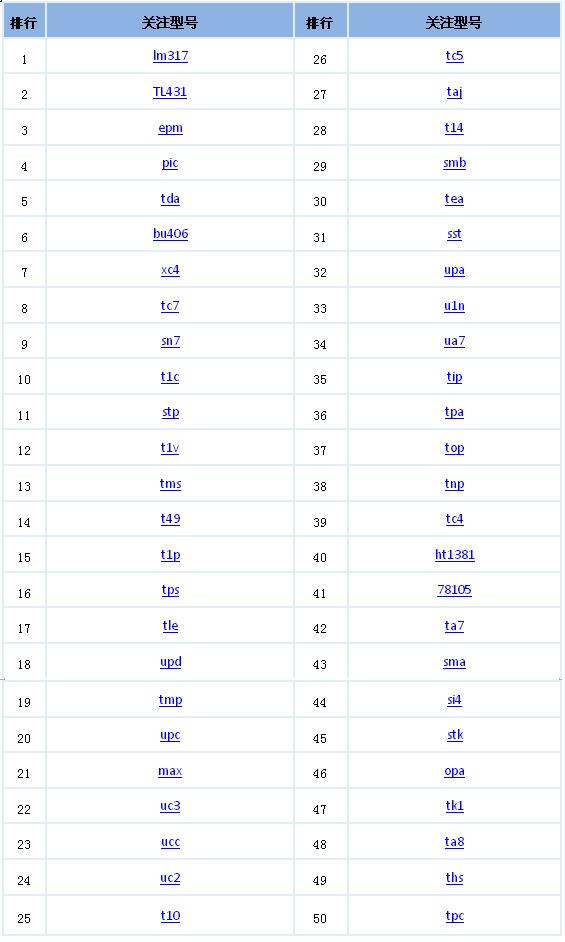 哪些IC型號最搶手,哪些獲得最多的詢價,前50名讓你一目了然!