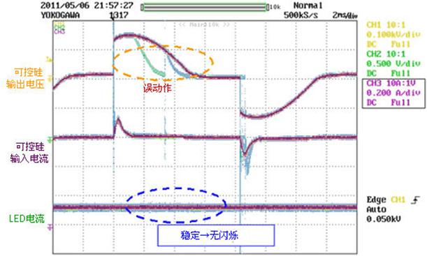[圖7] 可控硅調(diào)光器誤動作時BD555AKFV的LED電流波形