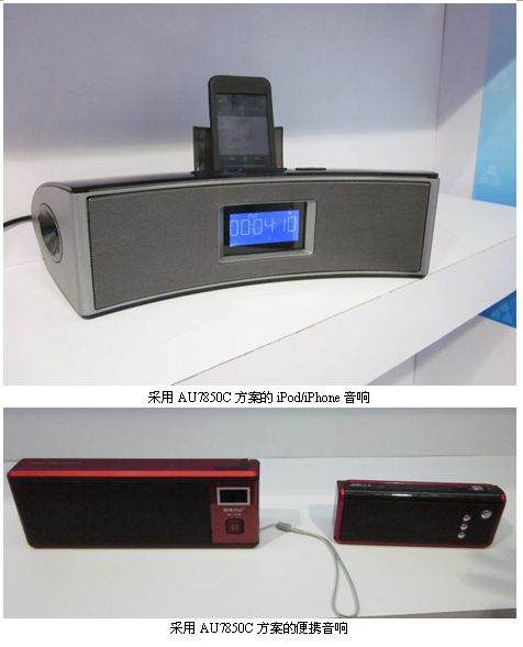AU7850C集成了豐富的外設(shè)和接口,包括藍(lán)牙、iPod/iPhone docking接口、數(shù)字音頻廣播接口,方便用戶進(jìn)行個(gè)性化設(shè)計(jì);支持溫度、頻譜、電池電量顯示,中文歌詞同步顯示;集成16位DAC以保證高品質(zhì)音頻輸出。芯片集成度高、待機(jī)功耗低、系統(tǒng)設(shè)計(jì)簡單,BOM成本低。