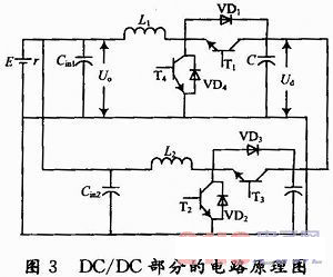 圖3所示的DC/DC變換器不但能對直流輸入電壓進(jìn)行變換處理,而且還可以對直流輸入電流進(jìn)行調(diào)節(jié)和控制,在DC/DC階段實現(xiàn)能量調(diào)控。