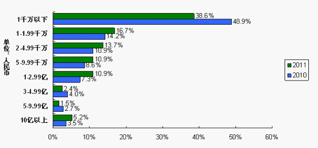 此外,IC和電子元器件的平均采購額由2010調查的1.02億增加至2011調查的1.15億,增加12.7%。采購總額在1億人民幣以上的系統(tǒng)廠商由2010調查的17.5%增加至2011調查的20.1%,大中型企業(yè)表現(xiàn)出成長。采購總額在1千萬以下的系統(tǒng)廠商由2010調查的48.9%降至2011調查的38.6%,小微型企業(yè)由于經營困難或缺貨沖擊而倒下。