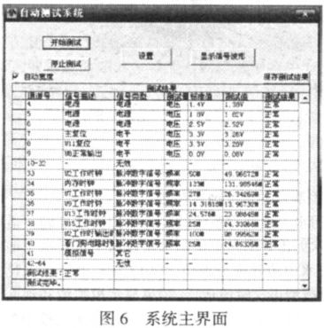 (3) 數(shù)據(jù)傳輸過程簡述。系統(tǒng)中與PC 機(jī)的通信采用的是RS232 接口,數(shù)據(jù)的傳輸完全符合RS232 標(biāo)準(zhǔn)?,F(xiàn)將數(shù)據(jù)的傳輸過程簡述如下:系統(tǒng)啟動后,首先進(jìn)行自檢,以確定系統(tǒng)工作是否正常;系統(tǒng)工作正常后,PC 機(jī)通過測試軟件對FPGA 內(nèi)部的各個(gè)寄存器進(jìn)行配置;然后發(fā)送開始命令,開始對有效的各個(gè)信號進(jìn)行采集;采集完成后向PC 機(jī)返回信息,PC 機(jī)根據(jù)需要通過測試軟件從FPGA 讀取相應(yīng)通道的數(shù)據(jù),將數(shù)據(jù)計(jì)算后與標(biāo)準(zhǔn)值進(jìn)行比較并得出測試結(jié)果。也可以根據(jù)需要讀取某一通道的原始數(shù)據(jù)以及采集某一通道信號的波形。在FPGA 內(nèi)部還擁有關(guān)鍵信號(電源)的監(jiān)測:任何一路電源信號不正常則重新進(jìn)行采集,若3 次采集結(jié)果均不正常則直接關(guān)閉電路板的供電電源,避免損壞電路板,并向PC 發(fā)送電源不正常的消息,并給出出現(xiàn)異常的通道號。