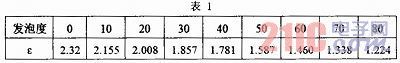 對于發(fā)泡電纜,ε與發(fā)泡度有直接聯(lián)系,PE材料發(fā)泡度與電容的關系參見表1。