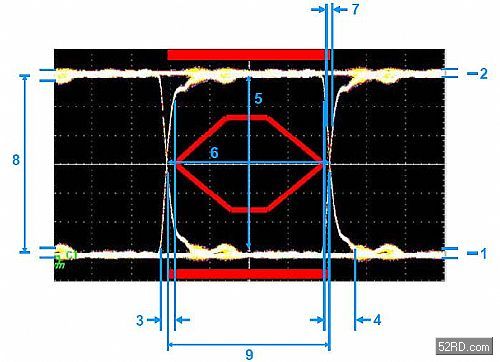 通過在示波器的垂直軸對數(shù)字信號進行反復(fù)采樣、同時采用相應(yīng)數(shù)據(jù)率對水平時間掃描進行觸發(fā)來生成眼圖。所獲得的圖形看上去象眼睛,如圖1所示。“眼睛”越大,數(shù)據(jù)完整性越高。通常采用模板(mask)來對可接受的信號質(zhì)量進行定義。這模板由“眼睛”中間的六角形和“眼睛”上、下的矩陣組成。如果測得的信號跡線穿越模板的邊線,那么信號質(zhì)量就不可接受。USB2.0信號模板規(guī)范由USB應(yīng)用者論壇(USBIF,www.usb.org)提供,可參見USB2.0版規(guī)范第7.1.2.2章節(jié)。圖1中顯示了帶有詳細臨界點的眼圖。