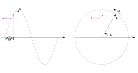 圖1 時(shí)域表述的正弦波與矢量信號(hào)的對(duì)應(yīng)關(guān)系