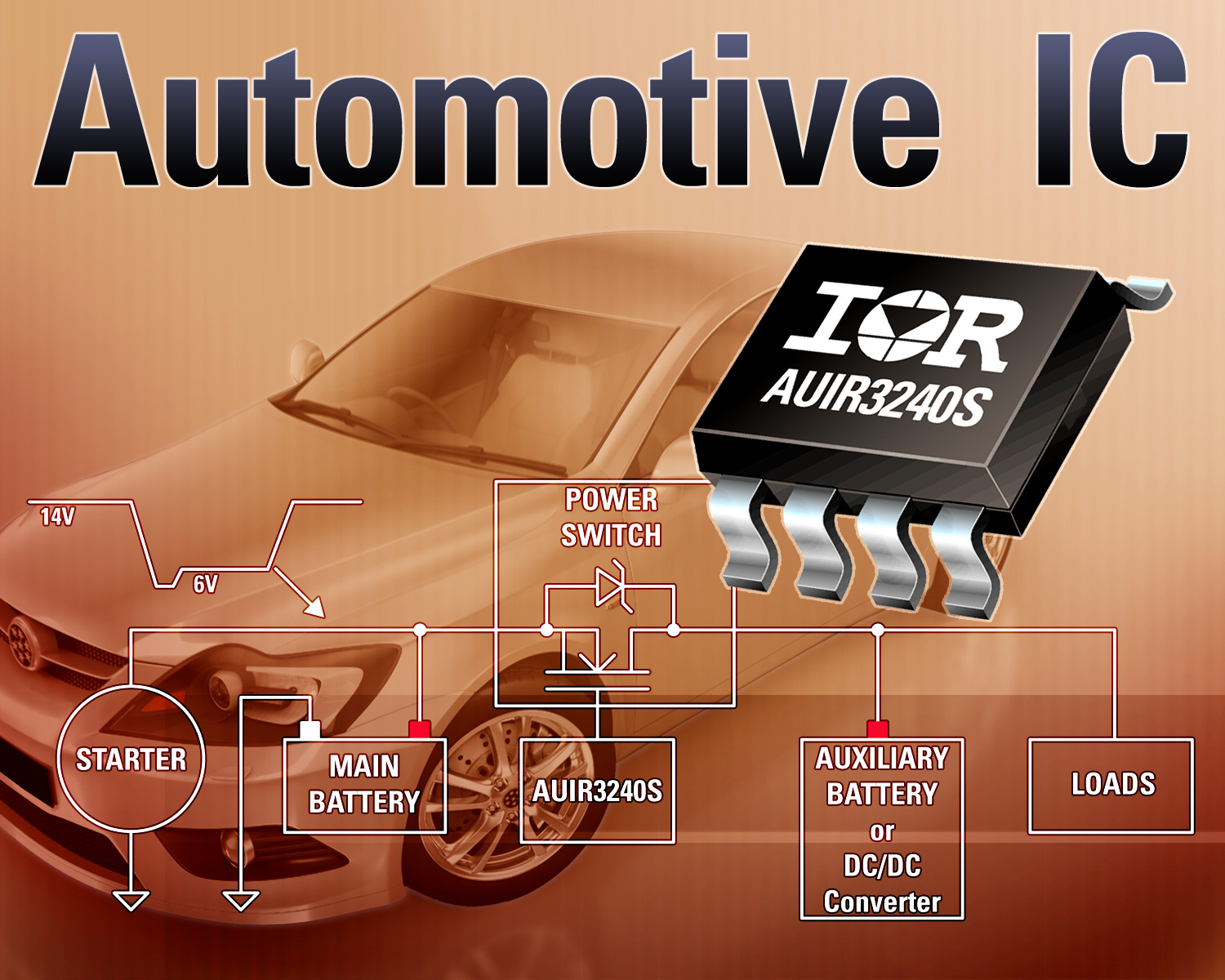 全球功率半導(dǎo)體和管理方案領(lǐng)導(dǎo)廠商國際整流器公司 (International Rectifier,簡稱IR) 推出車用AUIR3240S電池電源開關(guān),適用于內(nèi)燃機(jī)關(guān)閉和重啟功能 (啟停系統(tǒng)) ,可以幫助減少高達(dá)15%的車輛油耗。