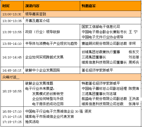 據(jù)悉,歷時(shí)4個(gè)月的第五屆中國(guó)電子行業(yè)誠(chéng)信交易企業(yè)評(píng)選活動(dòng)已接近尾聲,屆時(shí),本屆評(píng)選活動(dòng)的頒獎(jiǎng)盛典也將在本次峰會(huì)的當(dāng)天下午同時(shí)舉行。