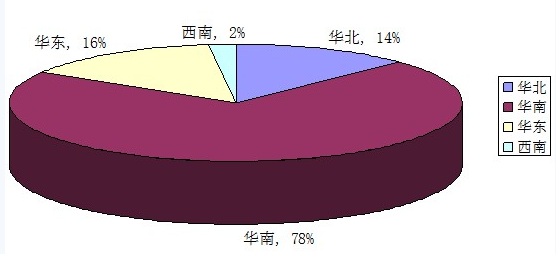 - 華南擁有著絕大部分的生產(chǎn)廠商占比高達43%