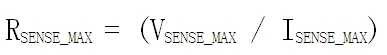 例如,如果通過(guò)檢測(cè)電阻的最大電流(ISENSE_MAX)預(yù)期為50mA,而高端電流檢測(cè)放大器所能接收的最大輸入電壓為250mV(VSENSE_MAX),則最大檢測(cè)電阻為5ohms (RSENSE_MAX)。