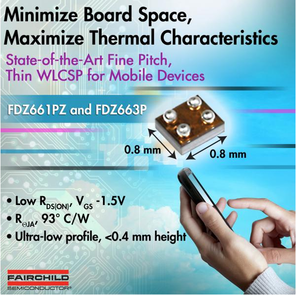 便攜設(shè)備的設(shè)計(jì)人員面臨著在終端應(yīng)用中節(jié)省空間、提高效率和應(yīng)對(duì)散熱問(wèn)題的挑戰(zhàn)。為了順應(yīng)這一趨勢(shì),飛兆半導(dǎo)體公司(Fairchild Semiconductor)開發(fā)了FDZ661PZ和FDZ663P P溝道、1.5V規(guī)格的PowerTrench®薄型0.8mm x 0.8mm WL-CSP MOSFET器件。