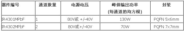 單通道IR4301M及雙通道IR4302M有助于設(shè)計師在各種通道配置內(nèi)靈活安裝立體聲放大器及進(jìn)行多通道設(shè)計。這兩個器件分別采用5×6 mm和7×7 mm PQFN封裝,有助于彰顯使用較小D類拓?fù)涞膬?yōu)勢。
