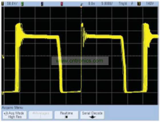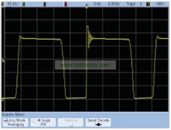 這種算法在垂直分辨率為12位時效果最好,因為再繼續(xù)增加下去,其他因數(例如示波器的垂直增益或偏置精度)將起到決定性作用。平均模式的優(yōu)點是,它對示波器的實時帶寬沒有任何限制。缺點是它要求使用重復性信號,并會降低波形更新速率。在正常采集模式下與平均模式下捕獲的開關電源的Vds分別如圖1和圖2所示。