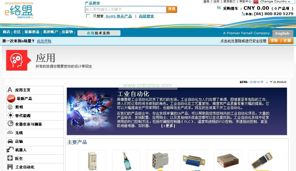 工業(yè)自動化可處理諸多生產(chǎn)中重復(fù)、人工難以完成、甚至是危險的工作,節(jié)省出的人員可承擔(dān)其它工作。制造廠家如浩亭(Harting)、霍尼韋爾,莫仕(Molex)、施耐德和TE Connectivity的控制解決方案在e絡(luò)盟子站中均可找到,包括可編程控制(PLC)、溫度和工藝PID控制,可變速驅(qū)動控制、甚至還包括機電繼電器、計時器和計數(shù)器控制。