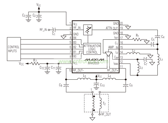 圖2:MAX2055典型應(yīng)用電路。