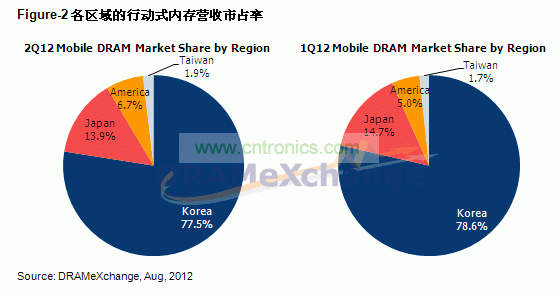 第二季行動式內(nèi)存營收,三星半導(dǎo)體市占逼近全球60%,仍穩(wěn)居龍頭之位,韓系廠商占全球行動式內(nèi)存營收的77.5%,較第一季僅小幅減少1.1%。第三名的日商爾必達(dá)市占則是小幅下滑0.8%來到13.9%,美商美光科技則受惠于中低階智能型手機(jī)的成長,市占小幅成長至6.7%,位居第四。臺系DRAM廠亦在行動內(nèi)存市場中試圖搶占一席之地,除了華邦電子之外,南科亦在本季營收當(dāng)中初次嶄露頭角,目前比重雖然不高,但也為整個行動式內(nèi)存的市場帶來不同的氛圍。值得注意的是由于下半年受到景氣不確定因素的影響,各家內(nèi)存制造商在下半年生產(chǎn)與開發(fā)的計劃也逐漸轉(zhuǎn)趨于保守,謹(jǐn)慎應(yīng)對自2009年以來最嚴(yán)峻的景氣寒冬。