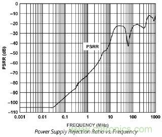 電源抑制(PSR)測(cè)量電源紋波如何與ADC輸入耦合,顯現(xiàn)在其數(shù)字輸出上。如果PSR有限,相對(duì)于輸入電平,電源線上的噪聲將僅會(huì)受到30至50 dB的抑制。