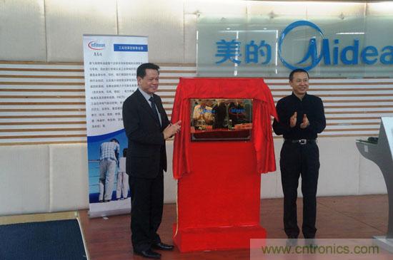 英飛凌科技(中國)股份有限公司總裁兼執(zhí)行董事賴群鑫和美的生活電器總裁甄少強共同為聯(lián)合實驗室揭幕。