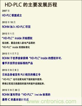 ROHM于2012年10月加入“HD-PLC”聯(lián)盟,并領(lǐng)先于全世界開始著手開發(fā)符合“HD-PLC” inside標(biāo)準(zhǔn)的基帶IC。