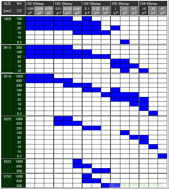 GCJ系列1608-5750尺寸、6.3V-1,000V正在商品化。此外,這里沒有表示出的150°C高溫環(huán)境下使用的產(chǎn)品也在商品化中。