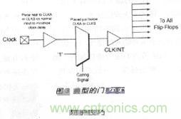這 是最廣泛使用的方法,即在器件末使用時(shí)截?cái)鄷r(shí)鐘來降低功耗。然而正確地截?cái)鄷r(shí)鐘十分重要。門控信號與門控邏輯應(yīng)正確地設(shè)計(jì),以消除時(shí)鐘線上的任何毛刺。再 者,門控邏輯會增加時(shí)鐘的延時(shí),影響建立時(shí)間與保持時(shí)間。由于抗熔斷是一種極快速的技術(shù),引入的延時(shí)很小且容易控制。在使用時(shí)鐘門控時(shí),用戶應(yīng)仔細(xì)地安置 門控邏輯,將時(shí)鐘網(wǎng)絡(luò)的延時(shí)降低到最小限度。典型的門控邏輯如圖3所示。