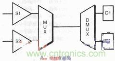 高 密度設(shè)計(jì)的布局必須留有空地并相當(dāng)?shù)卣归_,才可完成,這便導(dǎo)致連線長,每個(gè)線上開關(guān)多,這些因素產(chǎn)生不良的時(shí)序結(jié)果并增加了功耗。此外,塊中的邏輯趨向于 分類集結(jié)在一起,總線跨越不同塊時(shí)需走過較長的距離。在一個(gè)設(shè)計(jì)中采用時(shí)分復(fù)用寬總線技術(shù),可減少總線的數(shù)量,有利于時(shí)序和功耗。再者,在DSP設(shè)計(jì)中, 數(shù)據(jù)是相關(guān)的,這表明大多數(shù)數(shù)據(jù)位并未改變狀態(tài)。攜帶相關(guān)數(shù)據(jù)的總線應(yīng)盡量復(fù)用在一起,進(jìn)一步減少M(fèi)UX、DEMUX邏輯中的開關(guān)活動(圖5)。