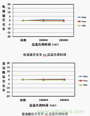 圖8:高溫負(fù)荷試驗 (+105℃ 環(huán)境/額定電流通電) 的主要電氣特性的變化