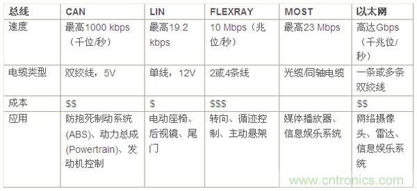 表1:汽車網(wǎng)絡(luò)總線