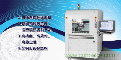 圣銘精密機(jī)械有限公司一直致力于自主產(chǎn)品的研發(fā),目前已經(jīng)自主研發(fā)了全自動選擇性涂覆機(jī),全自動 LED 芯片分光分揀機(jī),全自動 LED 插件機(jī),全自動 PCB分板機(jī)等產(chǎn)品。在本次NEPCON展會中,深圳市圣銘精密機(jī)械有限公司將展示國內(nèi)首創(chuàng)的全自動一體涂覆機(jī),可實現(xiàn)一臺機(jī)器正反面噴涂,具備生產(chǎn)效率大幅提高,節(jié)省空間等特點,同時,全自動涂覆機(jī)與高速點膠機(jī)的展出代表著深圳市圣銘精密機(jī)械有限公司的研發(fā)實力與明顯提高的產(chǎn)品生產(chǎn)力,值得一看。