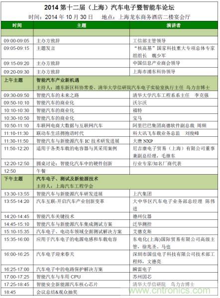 【導讀】我愛方案網 (www.52solution.com)、電子元件技術網 (m.flowcell.cn) 攜手中國電子展、清華大學、上海市浦東新區(qū)科學技術協(xié)會、上海市汽車工程學會順應時勢,將在2014年10月30日共同主辦第十二屆(上海)汽車電子暨智能車論壇。