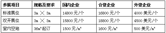 標準展位配置包括:每個標準展位三面墻板、二支射燈、一張咨詢桌、兩把椅子、地毯、220V交流電源插 座一只,中英文楣板等。室內光地展位無任何配置:(需36㎡起租)。