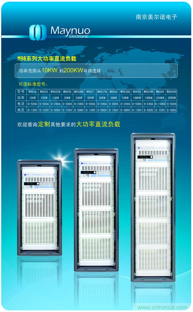 【導(dǎo)讀】近日,南京美爾諾推出多種型號(hào)的M98系列大功率直流負(fù)載,可提供選擇的功率范圍是10KW到200KW。如有其他要求,歡迎垂詢??靵砜纯窗?。