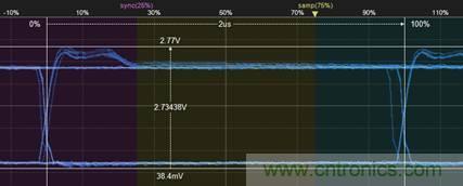 由此可見,該方法雖然可以大致測量出CAN節(jié)點(diǎn)的差分電平位信號特征,但由于其用于做分析的樣本很少,測量方式有很難操作,所以為了提高測量結(jié)果的準(zhǔn)確度,減低人工成本,文章中對測試方法進(jìn)行了改進(jìn),使用CANScope-Pro總線分析儀、CANScope-StressZ擴(kuò)展板,使用配套軟件的樣眼圖與對稱性測試進(jìn)行測量。