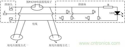 1.電源排插上是否存在LED指示燈,如果有,那么這個指示燈的電流就會被作為負載電流進行測量。排插接線如圖1所示,大多數(shù)排插都會有LED指示燈,通電后流經(jīng)LED燈的電流一般為mA級,因此,對被測電流帶來誤差,尤其是測待機功耗影響更大。
