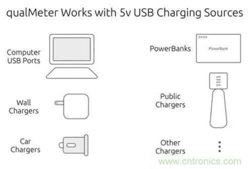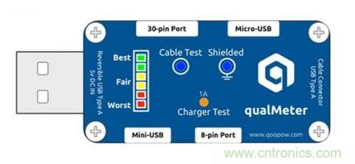 qualMeter能用于各種主流的USB充電線纜的測試,它還可以測試5V充電器的帶負載能力,從而大致確定其質(zhì)量。