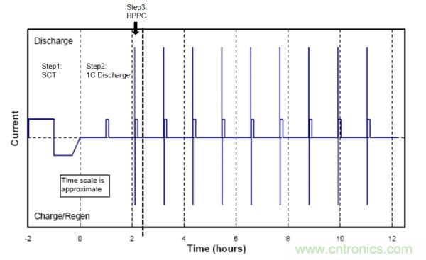 那么RPT測試需要包含哪些內容呢?首先容量衰減和內阻的增大是電池衰減的主要指標,其次RPT測試過程要盡量的簡潔,否則可能出現冗長的檢測過程造成了壽命影響因子的失真。一般情況下RPT測試由一次常溫靜態(tài)容量測試(SCT)和某個特定SOC點下的混合脈沖功率性能測試(HPPC)組成。 這樣即可快速的獲取電池容量和內阻這兩個關鍵參數。