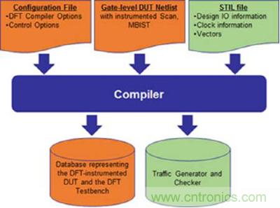 用于硬件加速仿真的 DFT App 改變了硬件加速器在開發(fā)階段的編譯流程和運行時間。這將為編譯流程和運行時間帶來重大變化。具有掃描和 MBIST 結構的門級設計被載入硬件加速仿真的編譯器。編譯器創(chuàng)建了用于讀取Stil文件中測試向量的測試結構,然后將這些向量應用到可綜合的待測器件 (DUT) 以及進行輸出比較。編譯器將用戶網(wǎng)表重新編譯并合成到一個能夠兼容硬件加速仿真的結構化描述中。編譯器創(chuàng)建了用于讀取Stil文件中測試向量的測試結構,然后將這些測試向量用到可綜合的待測設計上,再將網(wǎng)表重新編譯并合成到一個能夠兼容硬件加速仿真的結構化描述中。測試控制架構還包括比較輸出的機制。參見圖 1。