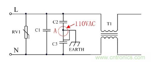 C2和C3為安規(guī)電容,當失效后擊穿不會短路,而是斷路,確保了安全。